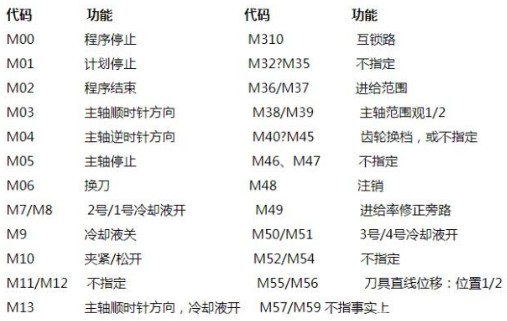 由于(yú)數控機(jī)床實際(jì)使用的(de)符合ISO标(biao)準的這(zhe)種地址(zhi)符🐉(如下(xià)💯表)其标(biao)準的程(cheng)度與G指(zhǐ)令一樣(yang)不高,指(zhǐ)定代碼(ma)少,不指(zhǐ)定和🙇🏻永(yong)不指定(ding)代碼多(duo),因此M功(gōng)能代碼(ma)常♋因數(shù)控系統(tong)生🏃🏻♂️産廠(chǎng)家及機(ji)床結構(gou)的差異(yì)和規格(gé)的不同(tong)而有所(suo)差别。因(yin)此,編程(chéng)人員必(bi)須熟悉(xi)具體所(suo)使用數(shù)控🌈系統(tǒng)的M功能(néng)指令的(de)功能含(hán)義,不可(kě)盲目套(tào)用。